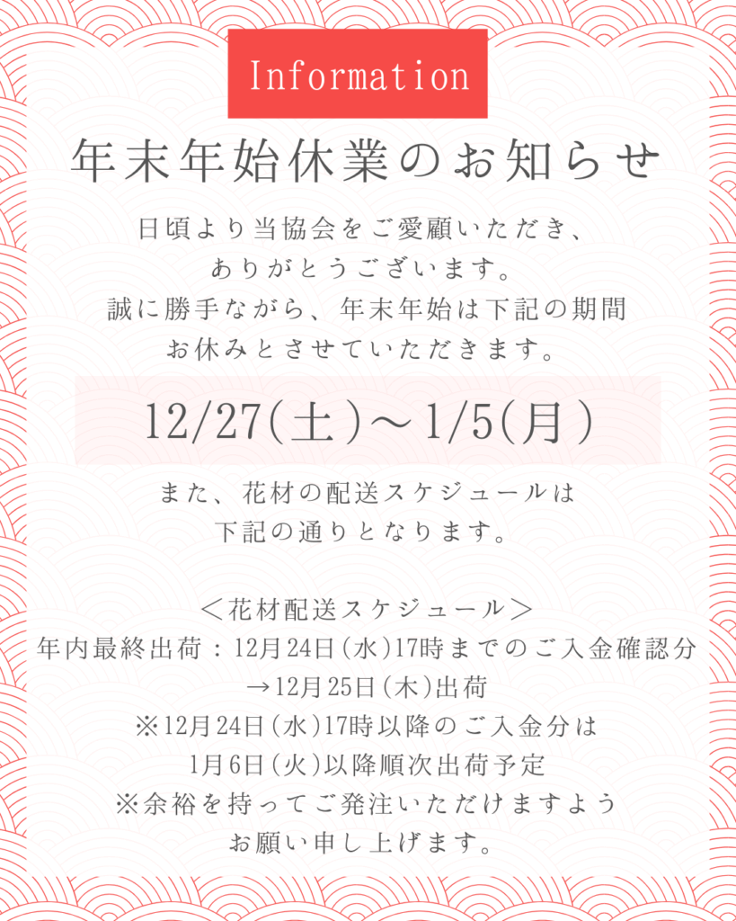 年内最終出荷:12月24日(水)17時までのご入金確認分→12月25日(木)出荷